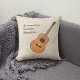 A pillow with an illustration of an acoustic guitar on a beige background and a customizable text for home decoration. Perfect for guitar lessons, guitarist, musician performer or lovers of music!