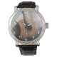 Uhr, Vintage Männeruhr mit schwarzem Lederarmband