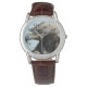 Uhr, Vintage Männeruhr mit schwarzem Lederarmband