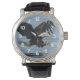 Uhr, Vintage Männeruhr mit schwarzem Lederarmband