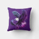 Adler und Schlangenwurfkissen. Wildlife Illustration eines amerikanischen Glatzadlers und eines Kobras, der in der Luft kämpft. Lila und blau auf schwarzem Hintergrund.