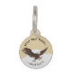 Illustration eines fliegenden Adlers, der mit offenen Flügeln angreift. Zwei benutzerdefinierte Textfelder im Kreis. Extra benutzerdefinierter Text auf der Rückseite.
