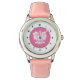 Kinderuhr aus Edelstahl mit rosa Lederarmband
