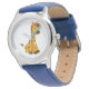 Kinderuhr aus Edelstahl mit blauem Lederarmband