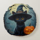 Adorable Black Cat Wear Hexenhut Rundes Kissen