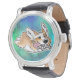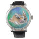 Uhr, Vintage Männeruhr mit schwarzem Lederarmband