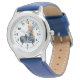 Kinderuhr aus Edelstahl mit blauem Lederarmband