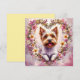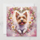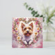 Charmantes Bild eines niedlichen Yorkshire-Terriers gerahmt von einem pulsierenden, herzförmigen Blumenkranz in pastellfarbenem Aquarell. Ideal für Themen rund um Haustiere, Natur und Zuneigung.