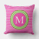Adrettes rosa und grünes Streifen-Monogramm Kissen
