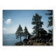 Ein Foto einer Gruppe von Kiefern auf einem felsigen Hügel über dem Tahoe-See.