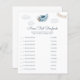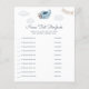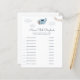 Blauer und tan Vintage Reise Thema Babydusche 'Name That Storybook' Spielvorlage mit einer Aquarelldarstellung eines niedlichen Flugzeugs mit einem Party Garland und Wolken.