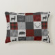 Patchwork-Design voll von rustikalen Waldelementen in rot, grau und schwarz. Hirsch, Bär, Pfeile und Bäume! Abenteuer wartet!