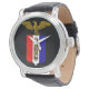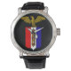 Uhr, Vintage Männeruhr mit schwarzem Lederarmband