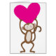 Ein niedlicher, lächelnder Affe hält ein großes rosa Herz über seinem Kopf.