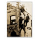 Männer posieren vor einigen weiblichen Bewunderern für ein Bild auf einem Telefonmast.