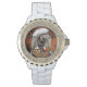 Eine wunderbare Damenuhr mit weißem Armband und grün-weiß-kariertem Ziffernblatt. Trägt sich ganz fabelhaft. Exzellenter Druck, sehr klare Farben. Schönes Design.