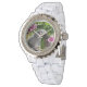 Eine wunderbare Damenuhr mit weißem Armband und grün-weiß-kariertem Ziffernblatt. Trägt sich ganz fabelhaft. Exzellenter Druck, sehr klare Farben. Schönes Design.