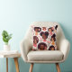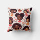 Ein hübsches Kissen mit afroamerikanischen Mädchen, die niedliche Puffs tragen, umgeben von einem hübschen Blumendruck auf weißem Hintergrund mit Sakura.