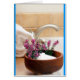 Hübsche Blume in einer Schüssel mit Epsom-Salzen auf einer Badewannenkante bereit zum Baden.