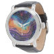 Uhr, Vintage Männeruhr mit schwarzem Lederarmband