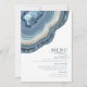 Nicht alle Hochzeitsdesigns sind gleich. Die asymmetrische Gestaltung der Stücke in diesem auffallenden Hochzeitsfest-Set beweist, dass das nicht schlecht ist! Weiche Farbbänder in den Farbtönen von staubblauem bis sandfarbenem Beige mit glitzerndem Kristall bilden bei den meisten Teilen des Set einen geode/agate Akzent. Die Hochzeitskarte 'Menü', die hier gezeigt wird, enthält die oben und eine Vorlage, um Ihre passenden Hochzeitsmenü-Auswahl hinzuzufügen. Auf der Rückseite können Sie auch die Namen der Braut und des Bräutigams und das Hochzeitstag hinzufügen. Suchen Sie ID647 um alle Koordinaten in diesem Set zu sehen.