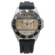 Uhr, Vintage Männeruhr mit schwarzem Lederarmband