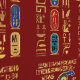 Ägyptische Hieroglyphen und Gottheiten auf rot