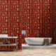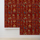 Ägyptische Hieroglyphen und Gottheiten auf rot Tapete
