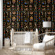 Ägyptische Hieroglyphen und Gottheiten auf schwarz Tapete