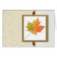 Ein einfaches, goldenes Ahornblatt, gerahmt mit Goldpapier. Ein sanftes Scrolldesign im Hintergrund. Ein Bronzeband rundet das Design ab.