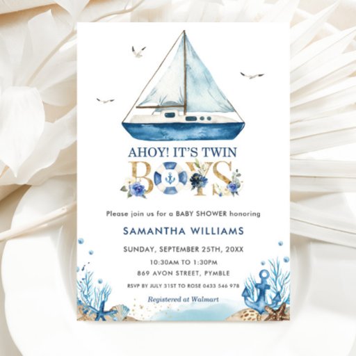 Ahoy, das ist die Baby-Dusche für Zwillingsboote Einladung