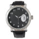 Uhr, Vintage Männeruhr mit schwarzem Lederarmband