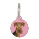 Airedale Terrier Niedlicher Hund Kopf auf rosa Her Haustiermarke