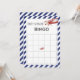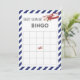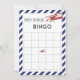 Babydusche Bingokarte mit Flugzeugdesign und marineblau blauem Streifen Hintergrund.
