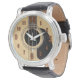 Uhr, Vintage Männeruhr mit schwarzem Lederarmband