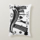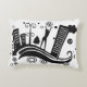 Ein stilvolles rechteckiges Kissen mit einem kühnen, schwarz-weiß-urbanen Design mit Wolkenkratzern, Bäumen, abstrakten Formen und einer Silhouette einer Person feiern. Modernes und künstlerisches Akzent für zeitgenössische Zuhause.