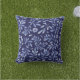Dieses Akzent-Kissen im Freien wird mit einem hübschen botanischen Botanischen Druck in blau und blau im Wasser gezeigt. Farben Navy Blau Passen Sie dieses Objekt an oder kaufen Sie, wie es ist. Börsenbild vecteezy.com