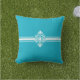 Dieses Akzent-Kissen ist in einer türkisblauen Farbe mit einem reizvollen dekorativen Elementdruck dargestellt.