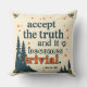 Endlich ein dekoratives Kissen, das die Wahrheit sagt – und es tiefgründig klingen lässt. „Akzeptiere die Wahrheit und sie wird trivial“ ist die Art von Weisheit, die man erst nach Jahren der Verleugnung, der Kapitulation und vielleicht ein paar schlechten Couch-Entscheidungen erlangt. Perfekt für Ihren Besprechungsstuhl, Ihre Meditationsnische oder die Couch, auf der Sie geschworen haben, nie wieder einzuschlafen. Für die genesende Seele, die alles akzeptiert hat… außer schlechte Dekoration.