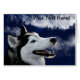 Eine Malerei von einem alaskischen Huskie, das den Mondschein betrachtet.