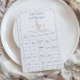 Mit dieser lustigen Bingokarte "Finden Sie den Gast" können Sie das Eis auf niedliche Weise brechen! Dieses interaktive Spiel, das mit einer whimsikalen Gans in einem blauen Bogen und Vintagen Blumen geschmückt ist, bringt die Gäste zum Mischen, wenn sie lustige Fakten und freundliche Gesichter Karo. Eine spielerische Ergänzung zu Ihrem albernen Gänseduschengeflecht!