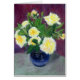 Grußkarte aus einem pastellfarbenen Ölgemälde von einem Haufen alchemistischer Rose in einem dunkelblauen Krug.