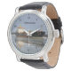 Uhr, Vintage Männeruhr mit schwarzem Lederarmband