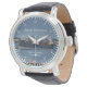 Uhr, Vintage Männeruhr mit schwarzem Lederarmband