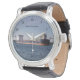 Uhr, Vintage Männeruhr mit schwarzem Lederarmband