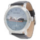Uhr, Vintage Männeruhr mit schwarzem Lederarmband