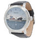 Uhr, Vintage Männeruhr mit schwarzem Lederarmband