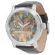 Uhr, Vintage Männeruhr mit schwarzem Lederarmband