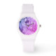 Uhr, Kinderuhr aus Edelstahluhr mit lila Lederarmband