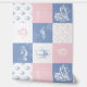 Eine tolle Alice im Wunderland, die mit Alice, dem Kinderbuch, dem Weißen Kaninchen, der Cheshire Cat und Mad Hatter gestaltet wurde, sowie Vintage Teeköpfe und Taschenuhren, in Rosa, Blau und Weiß, machen ein hübsches und lustiges literarisches Thema für ein Kinderzimmer- oder Kinderzimmer.